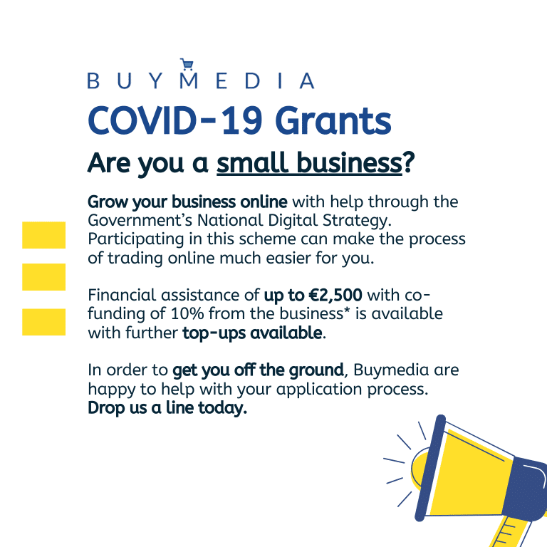 It offers financial assistance of up to €2,500 with co-funding of 10% from the business* along with training and advice to help your business trade online. Cutting the cost of developing your online trading capacity by up to 90% can make this investment very affordable for many small businesses out there.*