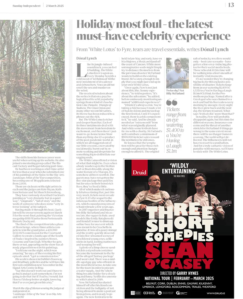National Print delivered cultural credibility and broad awareness, placing Druid centre stage in The Irish Times and Sunday Independent — the titles most trusted by their core audience.